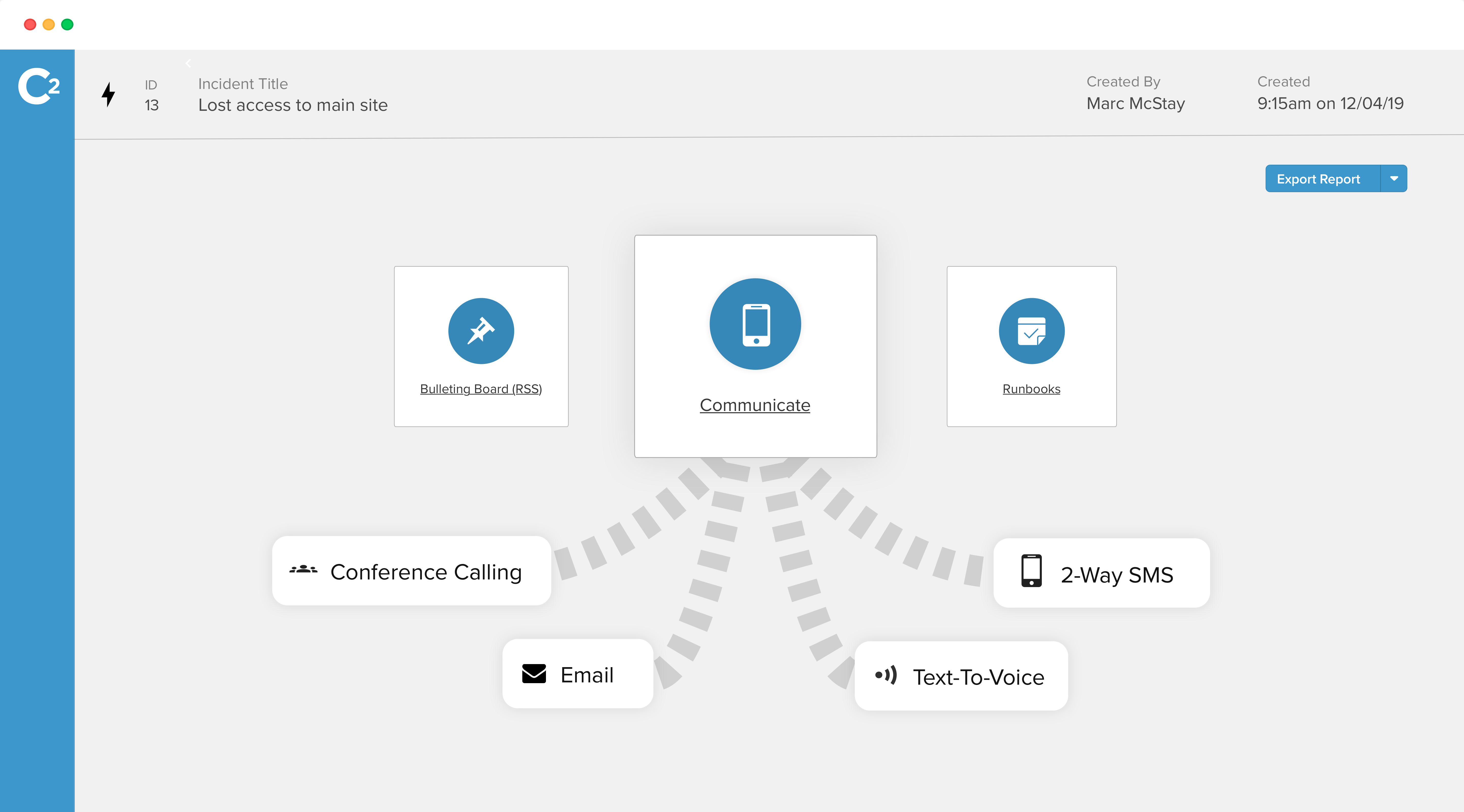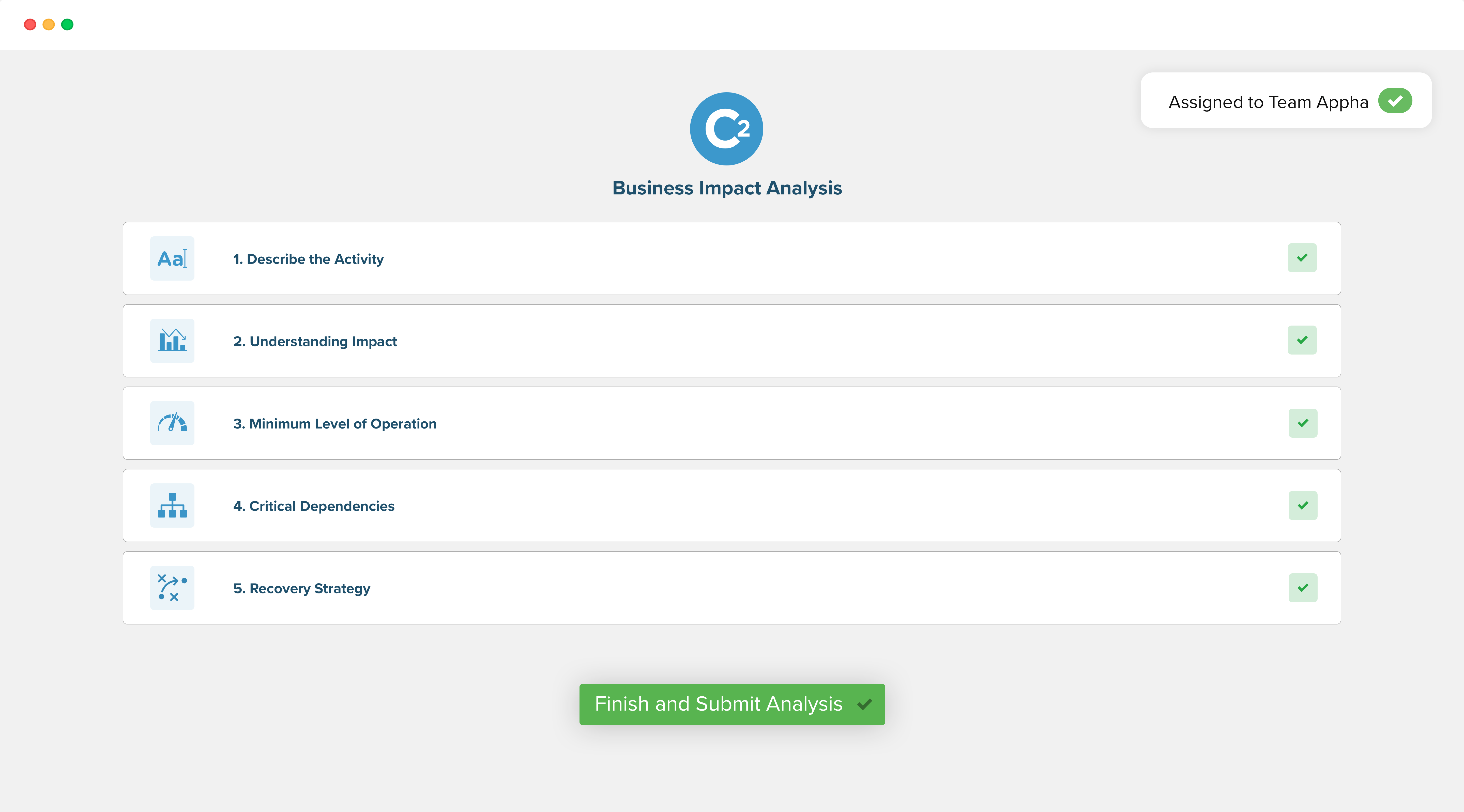 C2 is an application designed to manage a business continuity management system from a to z. We have been using C2 since November 2017, using it to implement an ISO 22301 compliant BCMS within 12 months. Customer and technical support are excellent, reacting very fast and effectively.